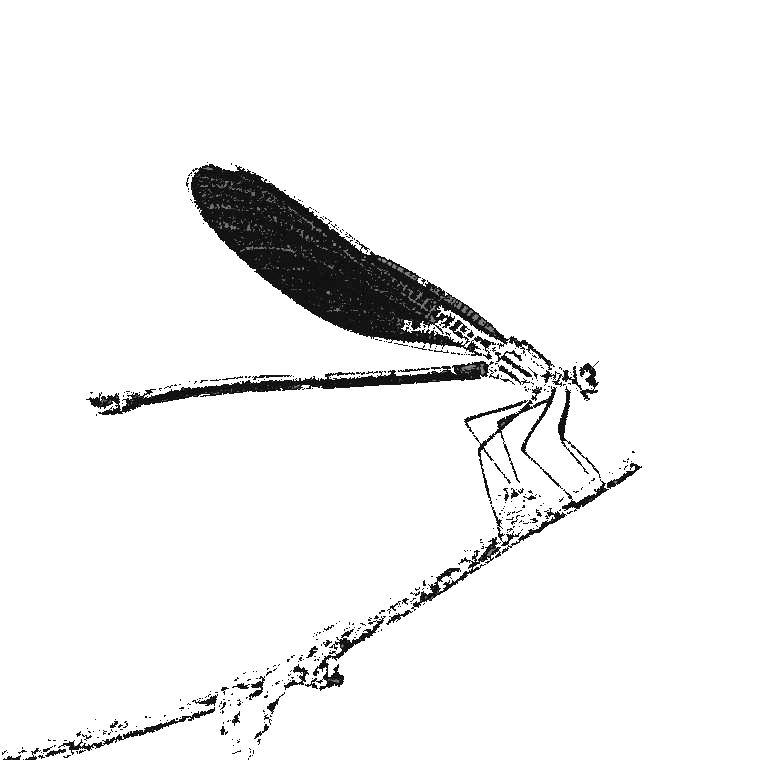 the magazine needed a logo to go with the name and i had none until my wife and i had an unexpected adventure that involved having to walk along the basin of a stream for three hours or so. it was very tiresome, but it was also beautiful, and one aspect of that beauty was that lots and lots of damselflies flew everywhere around us all the time, and they landed on branches bending over the water and we got to see their delicate features up close, and sometimes it seemed like they were posing for us, languidly flapping their wings, just showing off really.